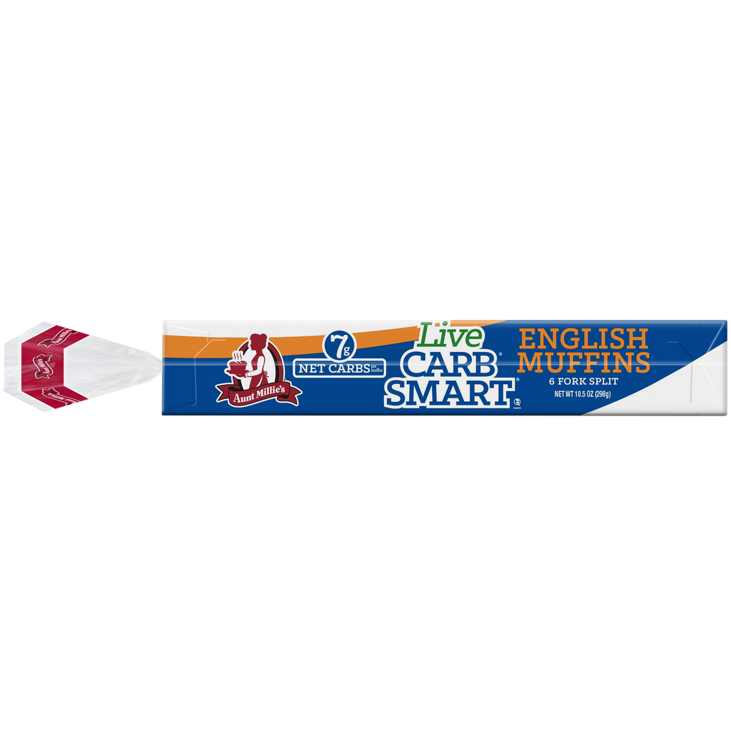 Aunt Millie's Live Carb Smart English Muffin is a low-carb, low-sugar English muffin perfect for those following a low-carb lifestyle. Aunt Millie's Live Carb Smart English Muffin is an excellent source of fiber and contains no high fructose corn syrup.