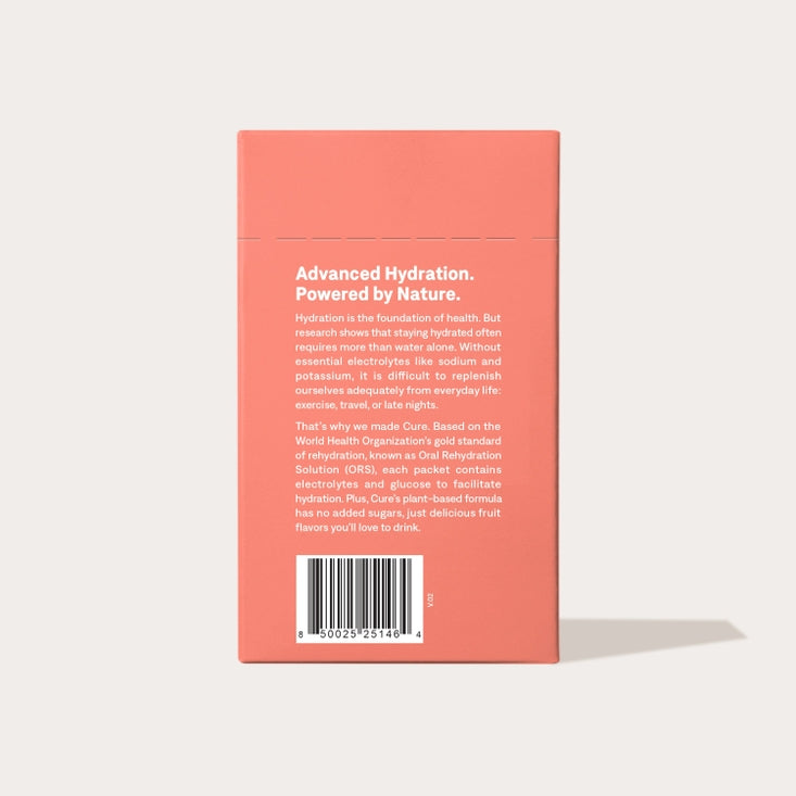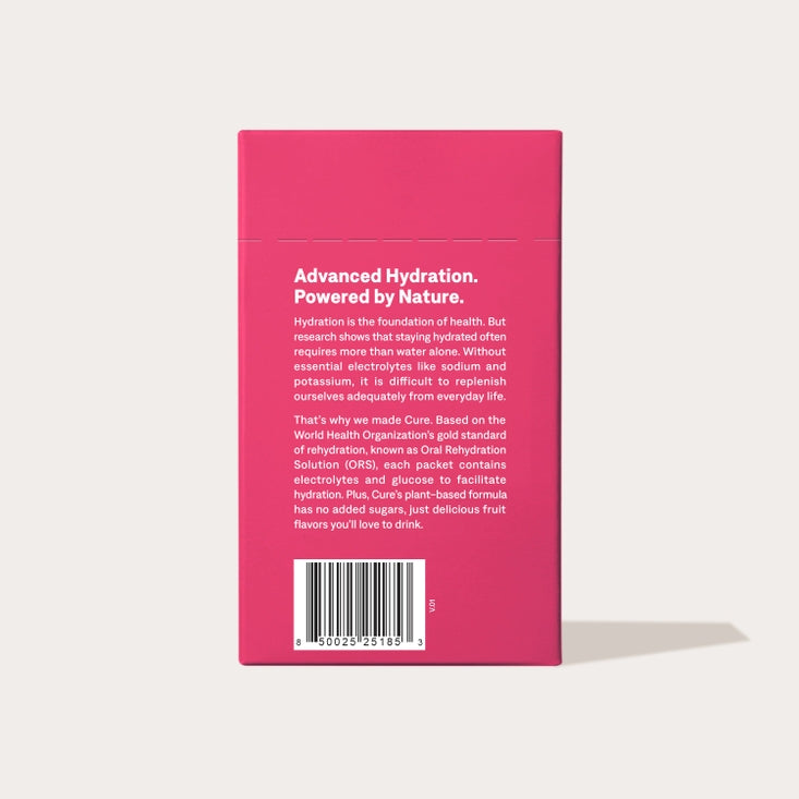 Stay hydrated the smarter way with Cure Hydration Electrolyte Drink Mix—a plant-based formula crafted with real ingredients, zero added sugar, and WHO-aligned electrolyte ratios for effective rehydration.