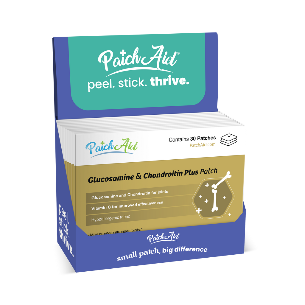 PatchAid Glucosamine and Chondroitin Plus contains nutrients that are used for building up collagen, which could reduce joint pain. The glucosamine, chondroitin, and MSM in PatchAid Glucosamine and Chondroitin Plus are commonly used to support collagen production in your body. Each patch also contains vitamin C and manganese, which are two essential nutrients for collagen production and joint health.