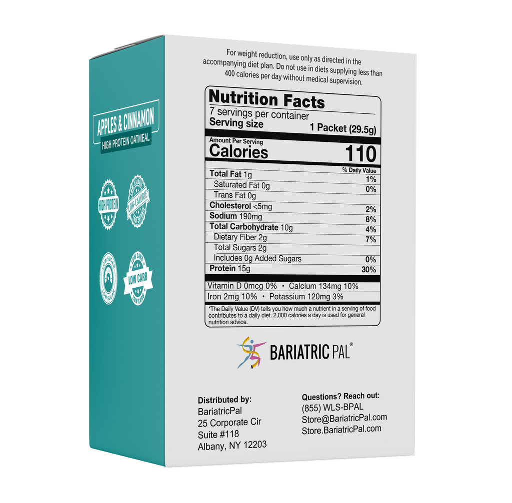 BariatricPal Hot Protein Breakfast Oatmeal is a low carb, low sugar, instant oatmeal. This sugar-free oatmeal is an excellent source of protein and is bariatric-approved.