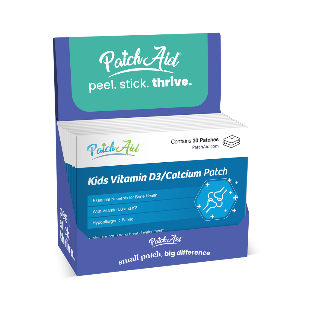 Why Choose PatchAid? Our patches are designed to provide nutrients without the need for pills or powders. The hypoallergenic fabric and convenient, topical delivery system make the Kids Vitamin D3/Calcium Patch ideal for children with sensitivities or picky preferences.