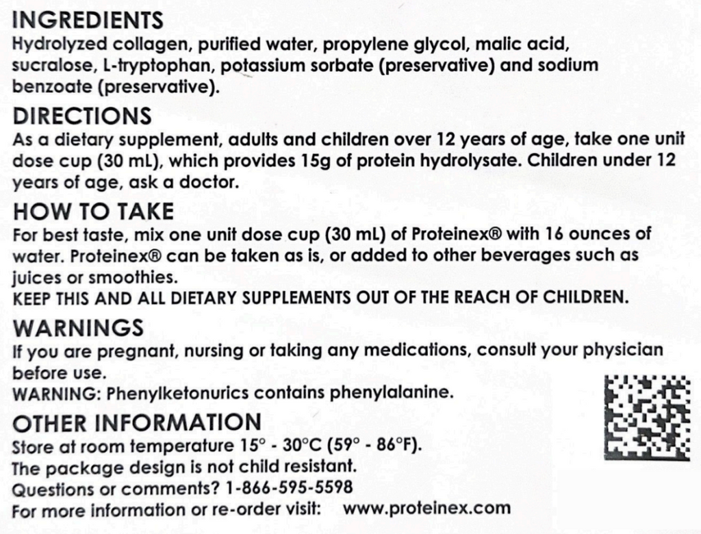 Other ingredients: Hydrolyzed collagen, purified water, propylene glycol, malic acid, artificial and natural flavor, sucralose, L-tryptophan, natural color, potassium sorbate and sodium benzoate