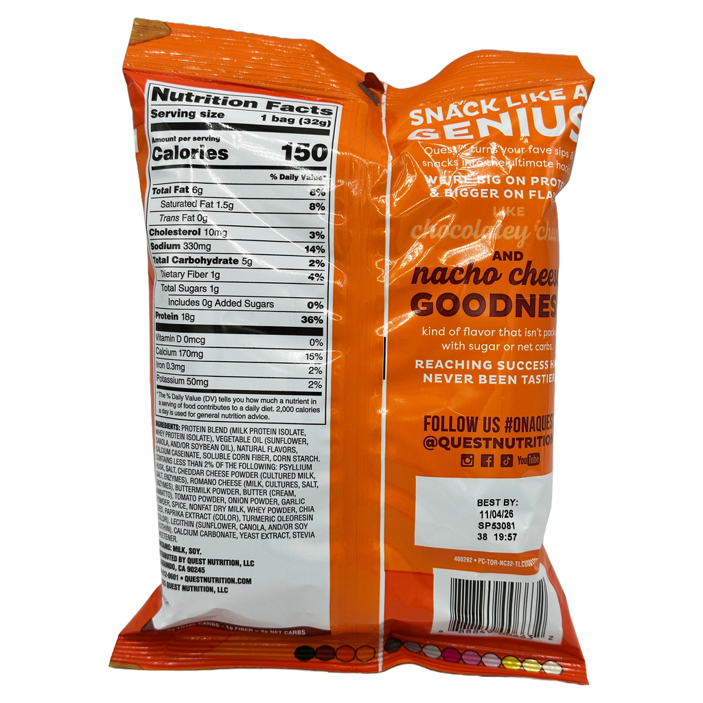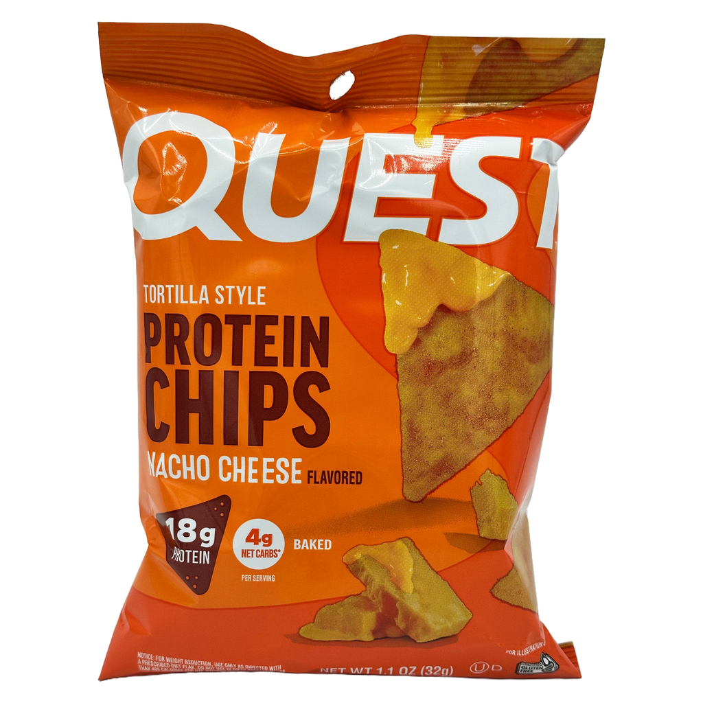 Quest Nutrition Tortilla Style Protein Chips are a low carb, gluten free, baked chip with 18g - 19g protein and only 4g net carbs per bag. Quest Tortilla Style Protein Chips will satisfy your chip cravings with their rich, zesty flavor.