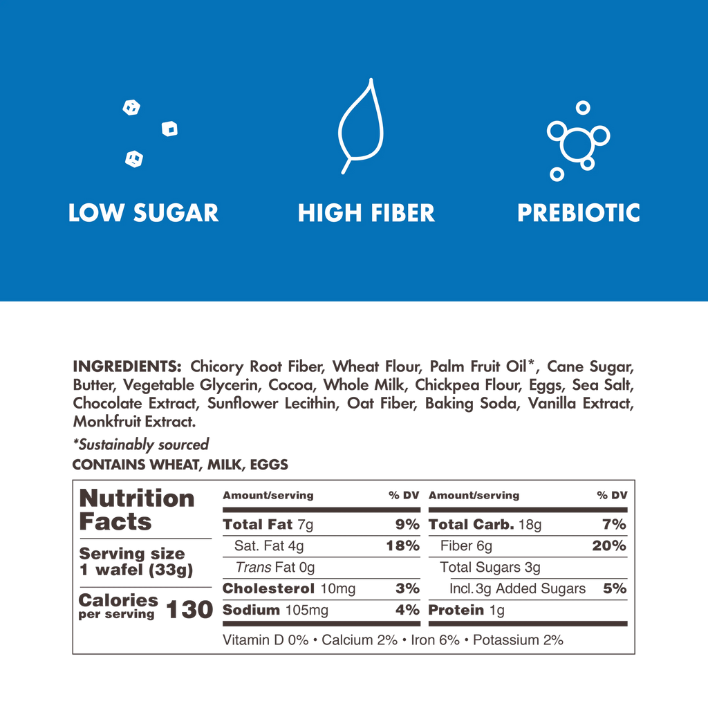 Get nostalgic with the satisfying adult version of milk & cookies! The inspiration behind Rip Van Wafel was to bring Americans a unique, guiltless and indulgent snack. The third iteration of the reinvented dutch stroopwafel has just 3 grams of sugar. That's 88% less than America's most popular candy bar with 58% less net carbs and 6X the fiber. Now go and indulge without the guilt!