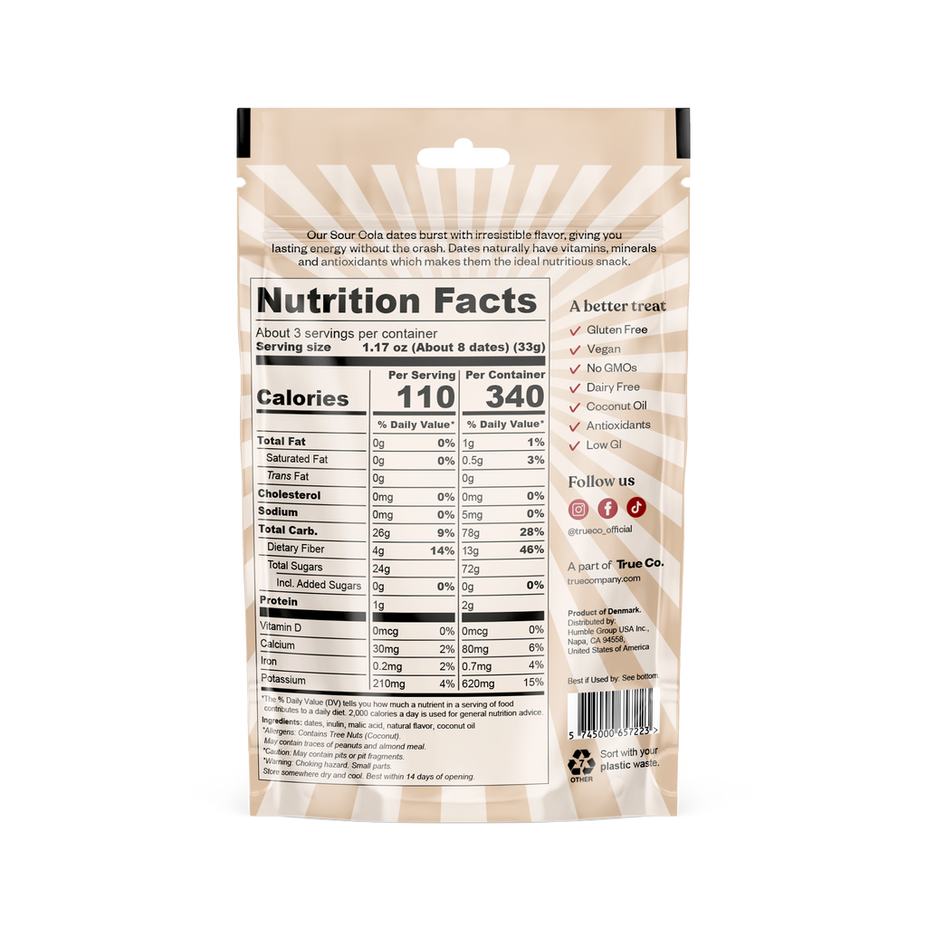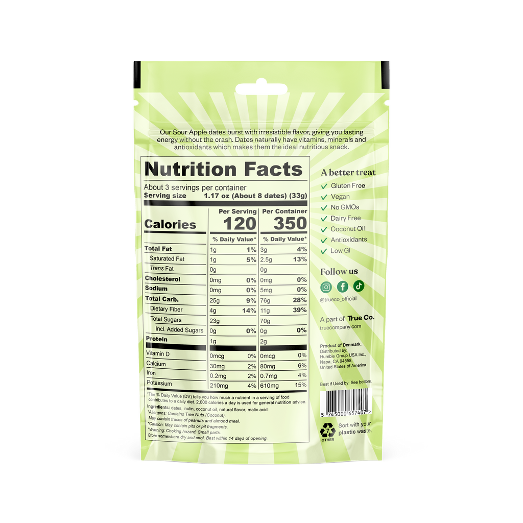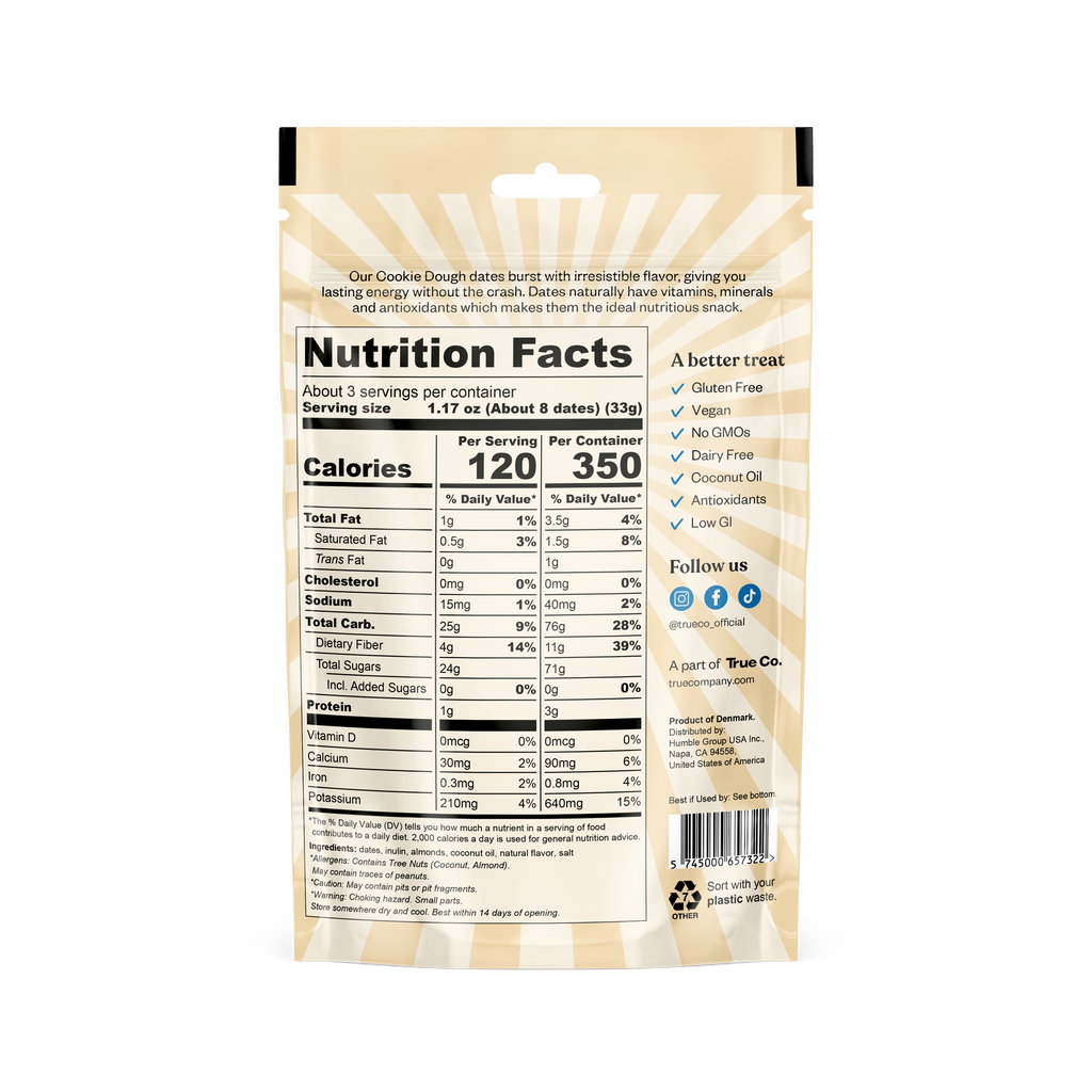 A delicious twist on nature’s candy—True Dates are naturally sweet, richly flavorful dates infused with exciting, all-natural flavors. Whether you're snacking straight from the bag or pairing them with cheese, yogurt, or nut butter, these gluten-free treats are a guilt-free indulgence.